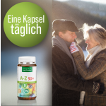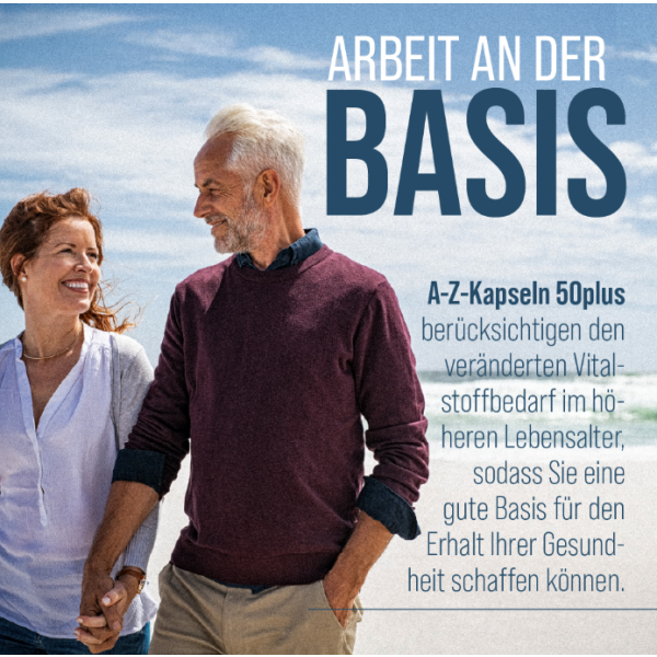 A-Z Capsules 50 + take into account this change in demand for vital substances with a higher age, so you create a good basis for maintaining your health and your well-being. For instancethe trace mineral chrome, contributes towards the normal metabolic rate of macronutrients and also helps maintain a normal blood sugar level.