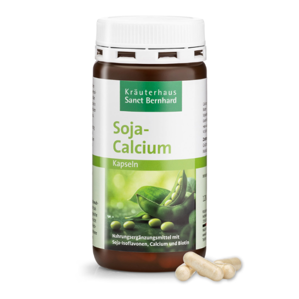 Ingredients: Calcium carbonate (22.8% calcium), soy extract (18.3%) rich in isoflavones, gelatin, bulking agent microcrystalline cellulose, Magnesium stearate, D-biotin.